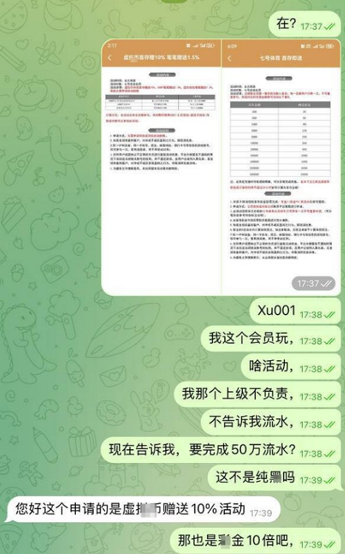 当会员申请提款时,客服却告知必须完成“本金加彩金共10倍流水”才能提现,相当于需打满50万元流水。