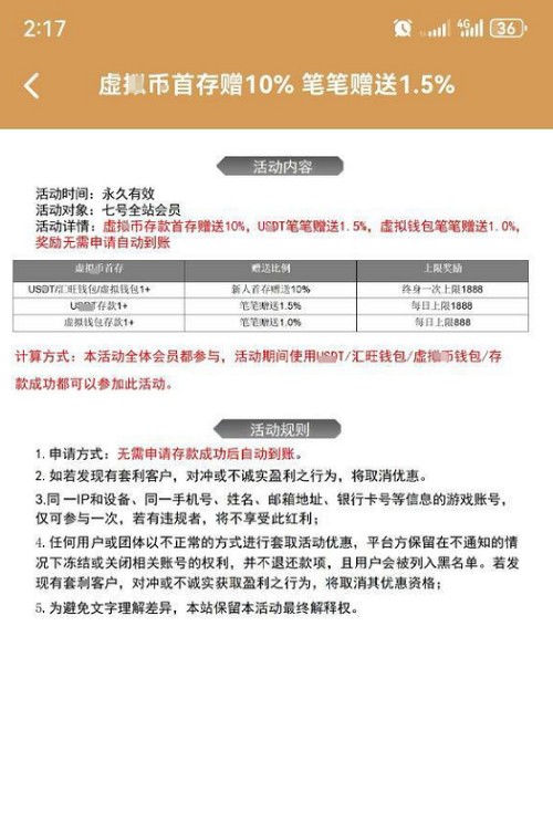 一个名为“七号体育”的网络平台为假平台,地点位于黄金城。他让会员充值5万元参与“1888彩金活动”,但平台在活动页面未注明任何流水要求。